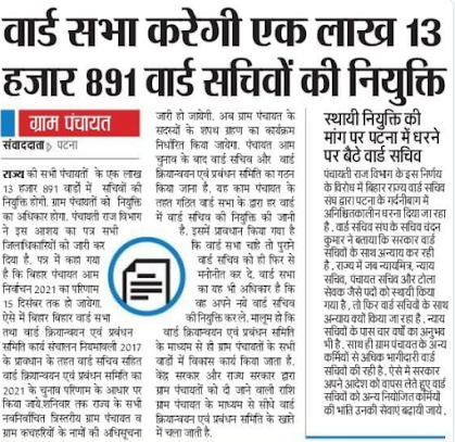 Bihar Panchayat Ward Sachiv 2021 न्यूज़ अपडेट
